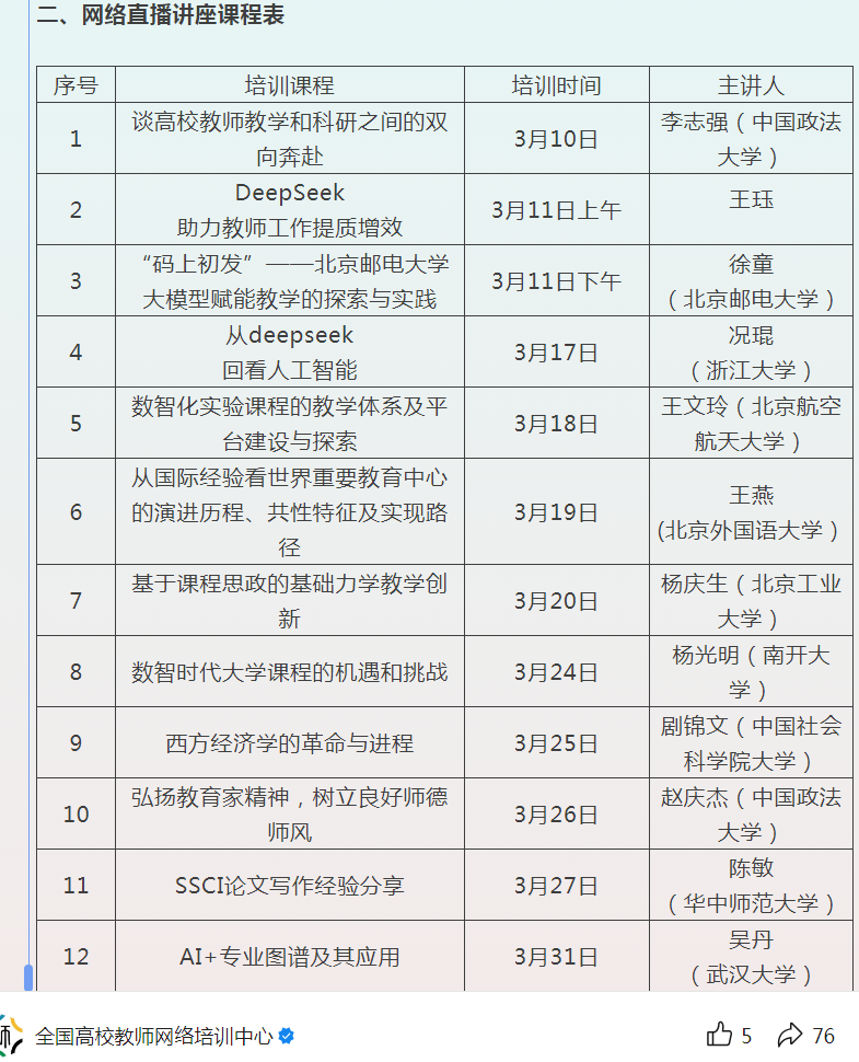 全国高校教师网培培训中心(3月)直播讲座,教师可以自己登录校级平台网址(https://onlinenew.enetedu.com/guat)在“直播讲座”模块选择对应的课程进行报名学习(没有回放),学习结束后可打印1.5学时的学习证书。
