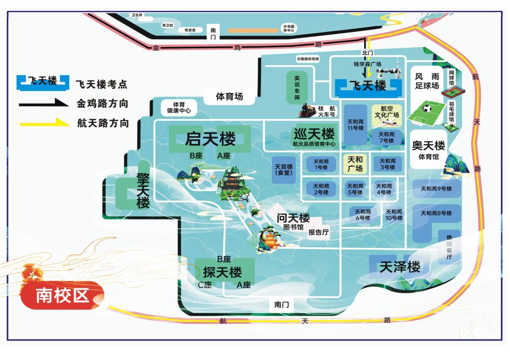 2.本次考试考场安排在我校南校区的飞天楼,请从南校区北门(金鸡路)进入。