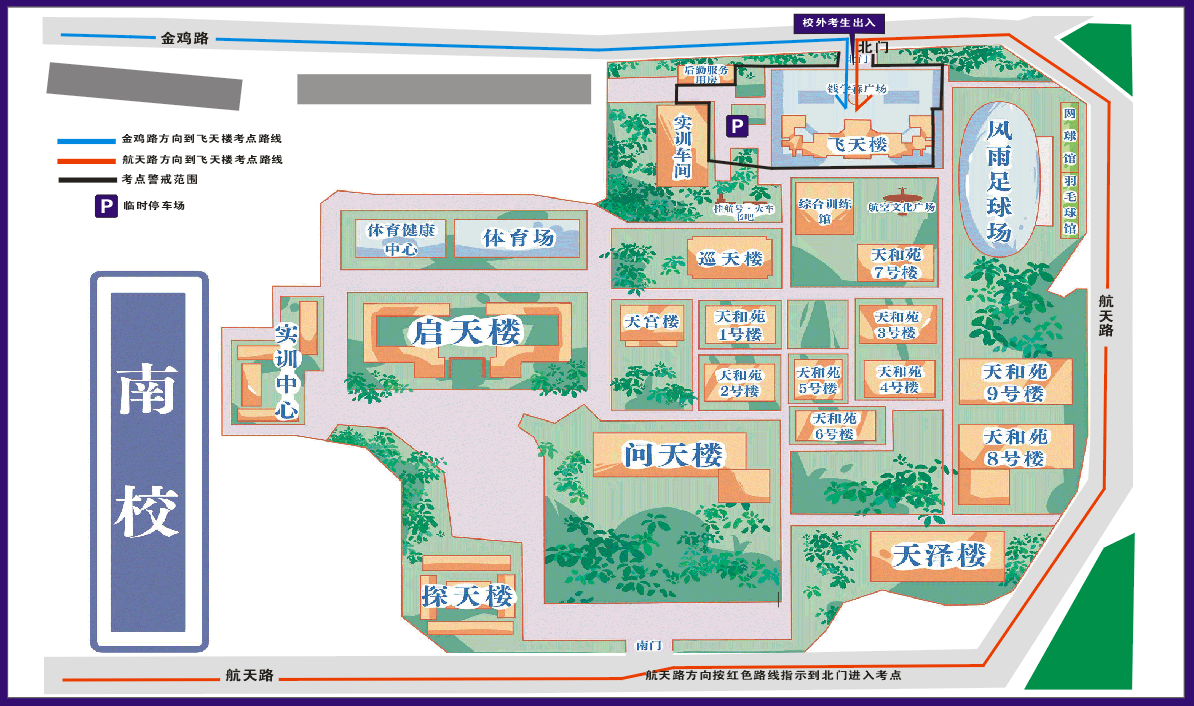 2.本次考试考场安排在我校南校区的飞天楼,所有考生需从南校区北门(金鸡路)进入。