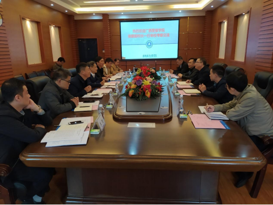 10月21日,广西警察学院谢鹏副校长一行来我校调研交流。我校副校长李智、教务处、教学质量监控与评估处、人事处、人文素质与创新创业学院负责人参加了会议,会议由李智主持。