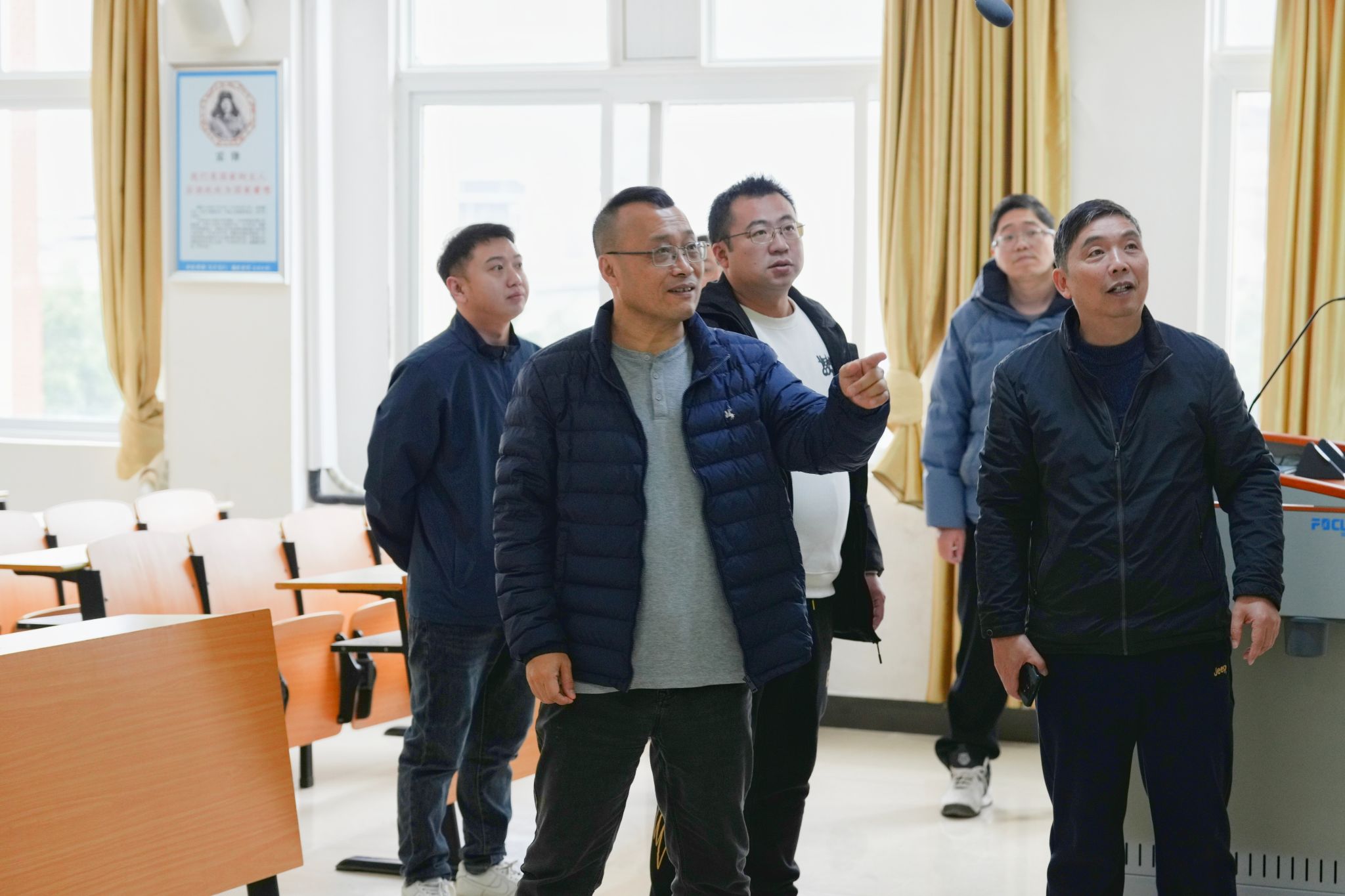 2025年12月31日上午,校长吴尽昭在教务处相关负责人的陪同下,深入探天楼、飞天楼,实地检查多媒体教室新装空调、新升级的物联网智慧教学融合平台、光能黑板、智能巡检、巡课系统等智慧教学设备,以及智能中控、高清网络摄像机、无线麦克风等配套设施的运行与应用情况。